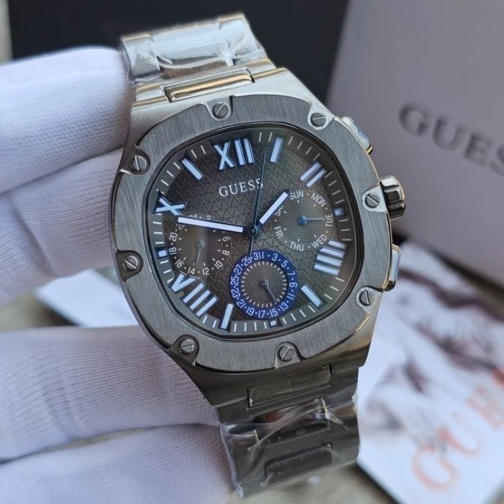 JAM TANGAN PRIA GUESS HEADLINE GW0572G5 GREY LIST BLUE STAINLESS STEEL - ORIGINAL FREE ONGKIR