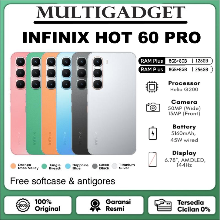Infinix Hot 60 Pro 8/128GB - 8/256GB (16GB Extended RAM - Helio G200 - 6.78'' 144Hz AMOLED - 50MP - 5160mAh) ho 60 pro