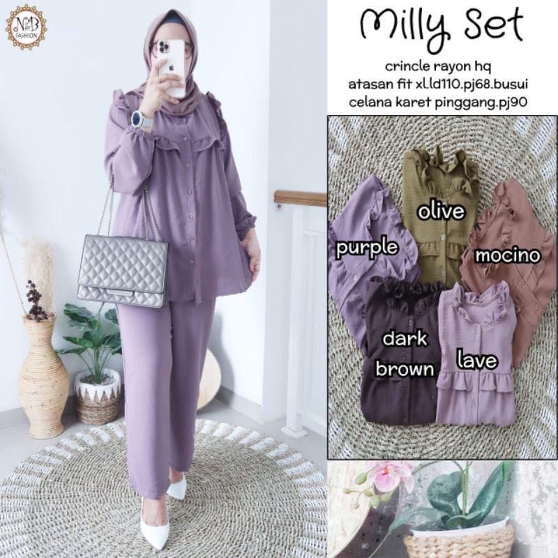 Terbaru Milly Set Rayon Crincle | Stelan Kekinian | Baju Setelan Model Terbaru | Baju Setelan Dewasa Wanita Good Quality