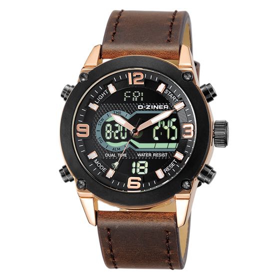 JAM TANGAN PRIA DZINER 8222 DUAL TIME STRAP KULIT