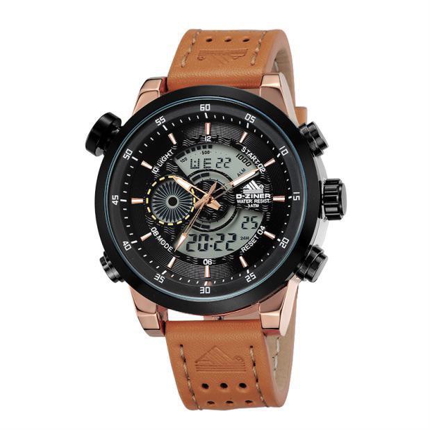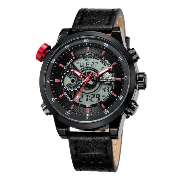 JAM TANGAN PRIA DZINER 8224 DUAL TIME STRAP KULIT
