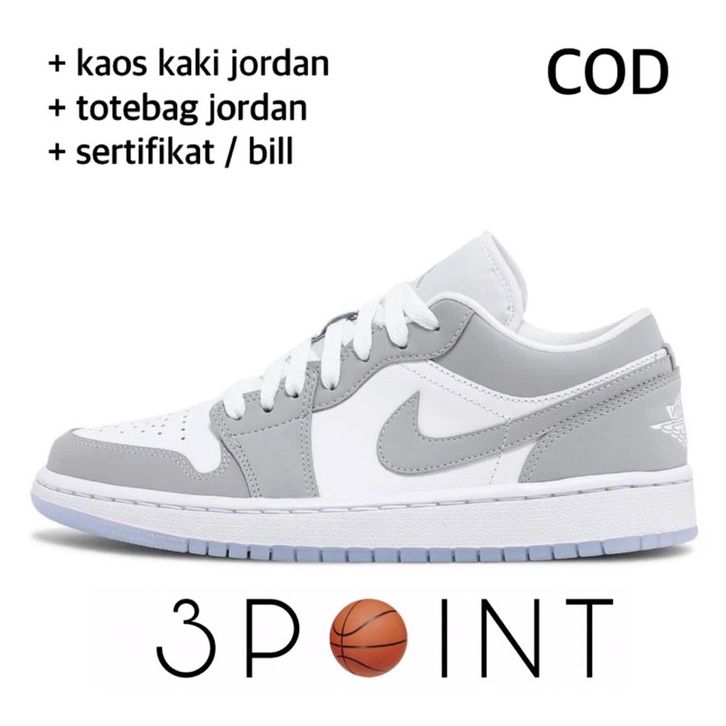 Sepatu Air Jordan 1 Low Retro Wolf Grey Gratis Ongkir