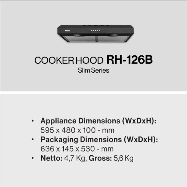 Cooker Hood RINNAI RH 126 B Penghisap asap dapur hitam 60cm 126b tanpa cerbong asap