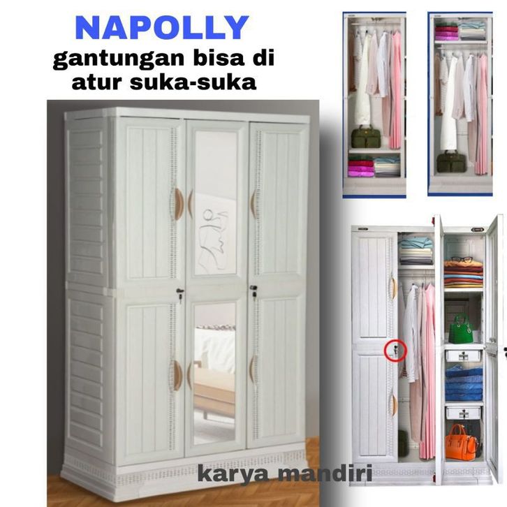 LEMARI PAKAIAN PLASTIK NAPOLLY 4 PINTU MAHKOTA CABROTA 466 DK