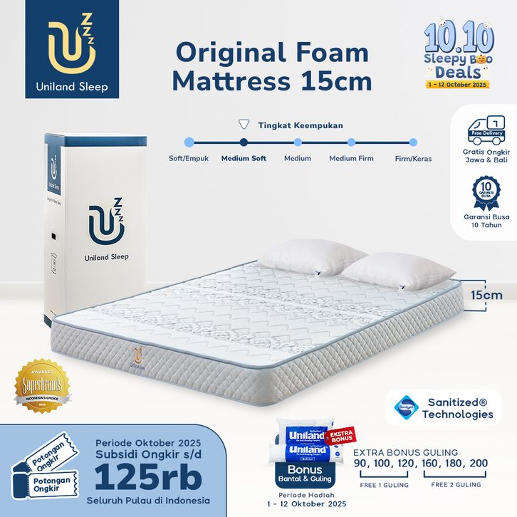 Kasur Busa Uniland Sleep Original 15cm Foam Mattress Box FREE BANTAL