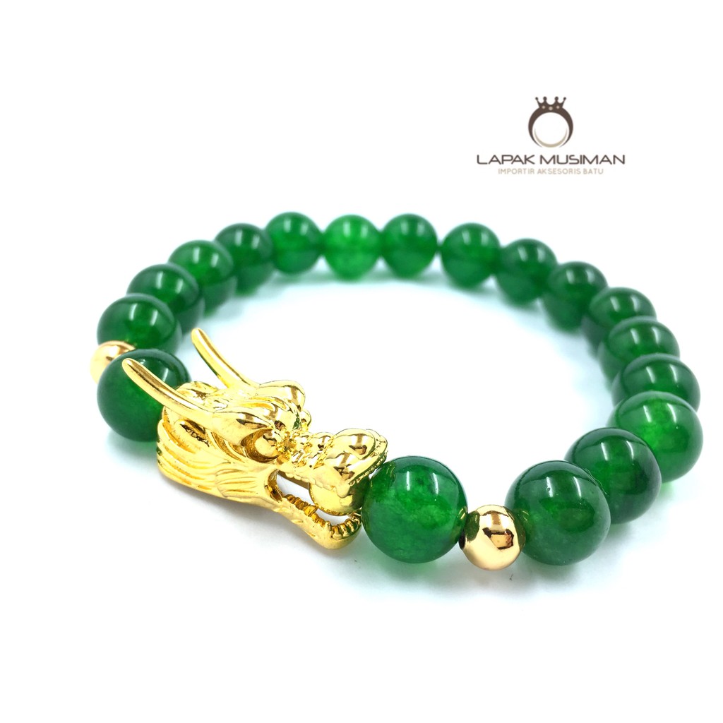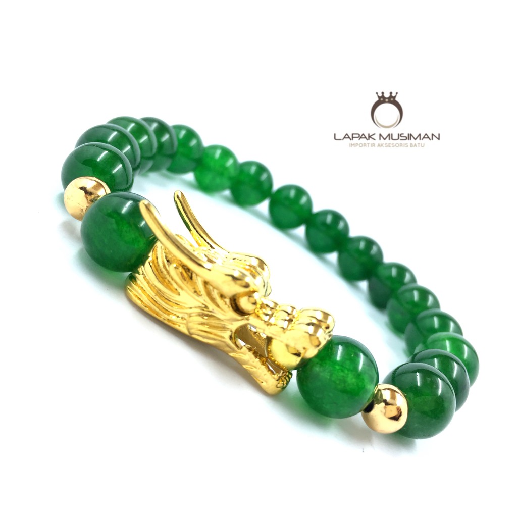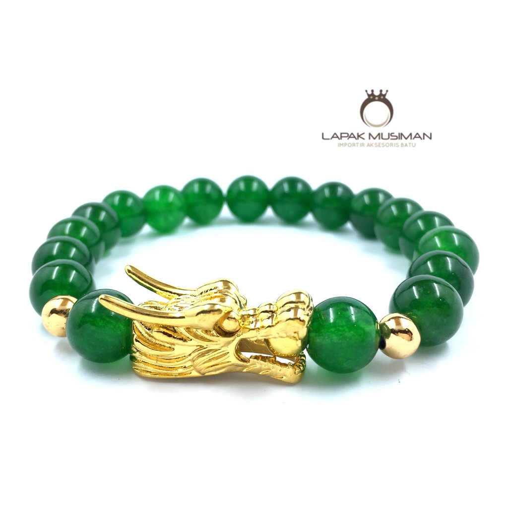 GELANG PRIA NAGA GIOK HIJAU ASLI ORIGINAL 10MM