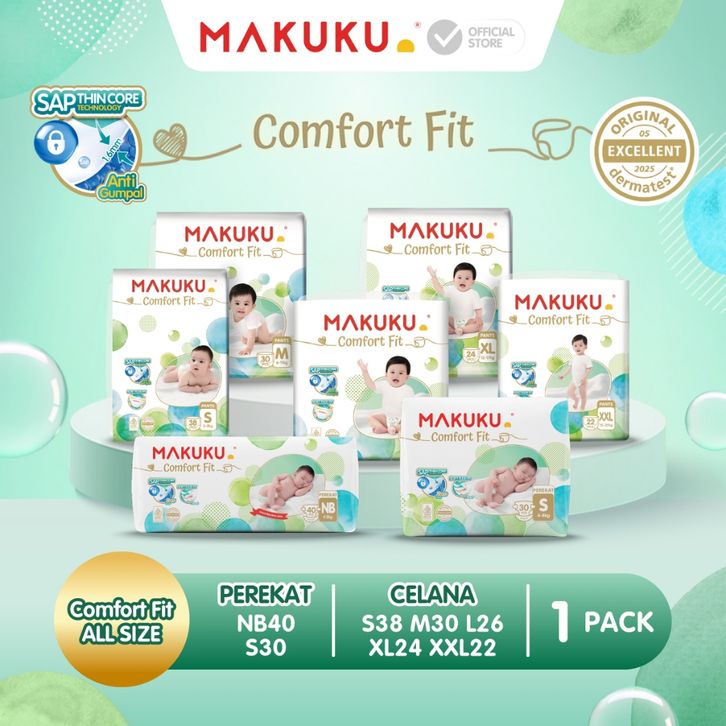 Makuku Sap Diapers Comfort Fit Pants Tape NB40 / S30 / M30 / L26 / XL24 / XXL22