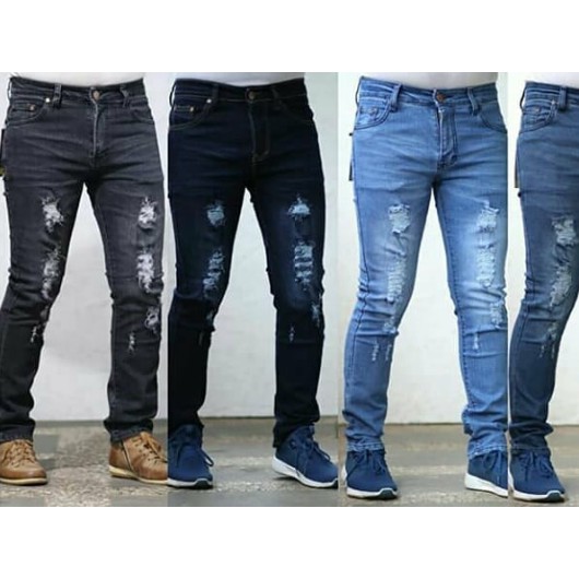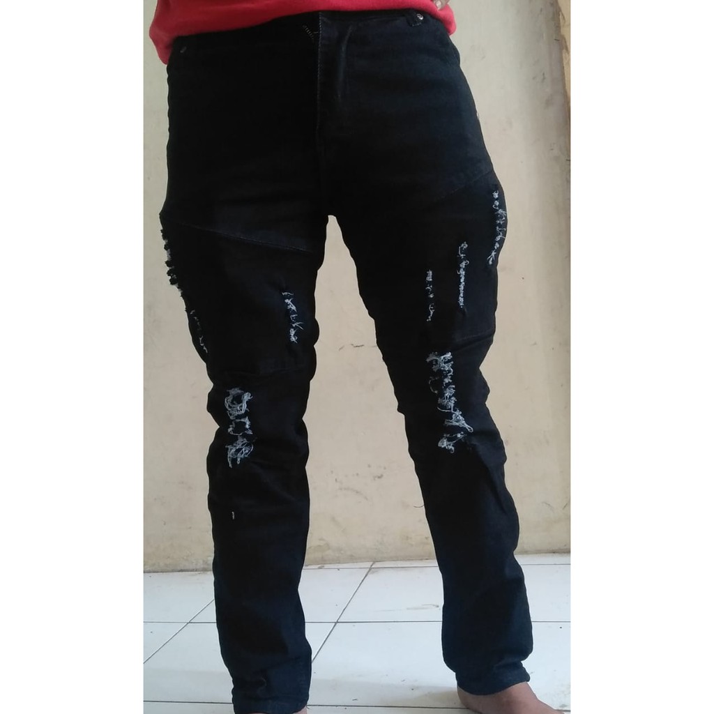 Bikers Rider Ripped - Celana Jeans Pria Sobek Lutut Ripped - Jeans Celana Panjang Snow Pria
