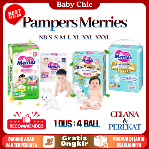 [Mall]Popok Bayi Murah | Pampers Merries Pants Good Skin Ukuran S M L XL Sampai isi jumbo M50 L44 XL38pcs / Dus