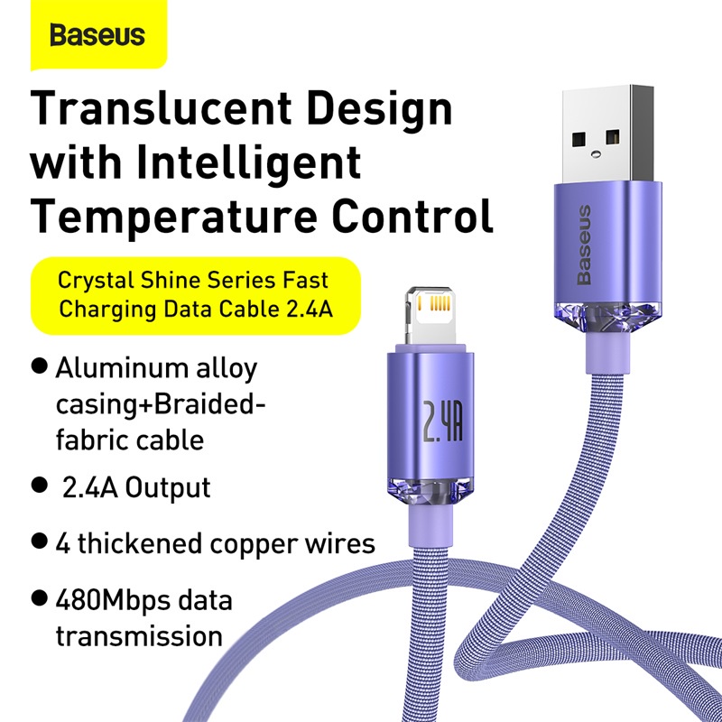 Baseus Crystal Shine Kabel Data iPhone Cable USB to Lightning Fast Charging 2.4A
