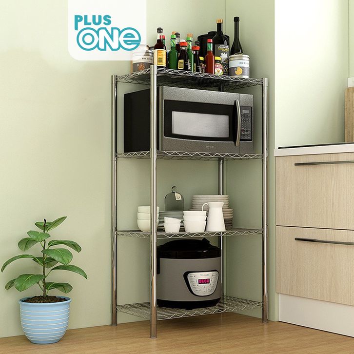 Plus One Rak Penyimpanan Susun 4 Tingkat Besi Rack Dapur Microwave Kamar Mandi Rak Buku Serbaguna -1002