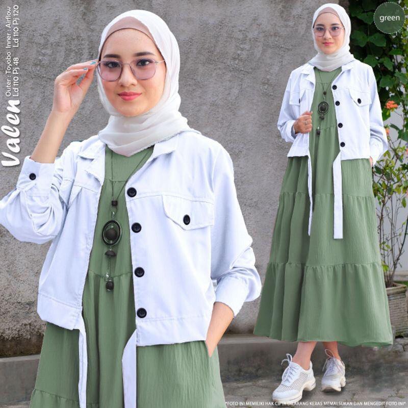 VALEN SET / ONE SET 2IN1 BAHAN CRINKLE AIRFLOW + TOYOBO / SETELAN WANITA KEKINIAN / FASHION MUSLIM TERBARU