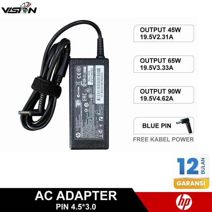 Adaptor Charger Laptop HP Blue Pin 4.5x3.0mm 19.5V 45W / 65W / 90W Adaptor HP Pavilion | Original Garansi 12 Bulan