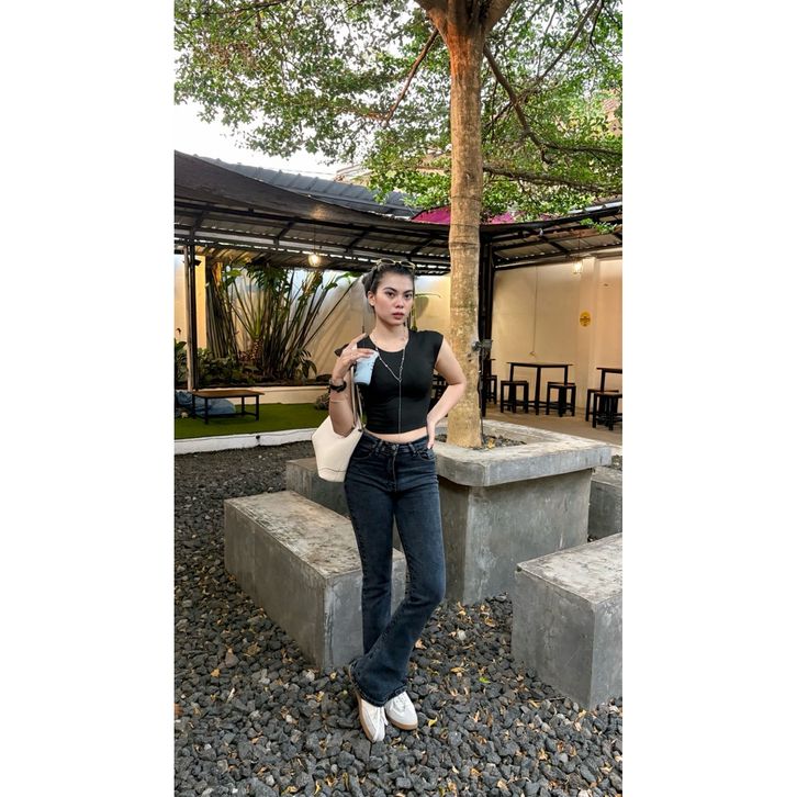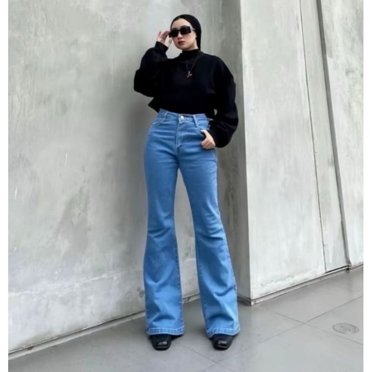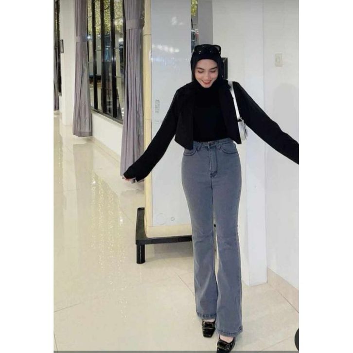 Highwaist Cutbray Jeans Wanita Celana Panjang Wanita Denim Jumbo Dewasa Murah Karet Terbaru Kulot Katun Kerja Bahan Kain