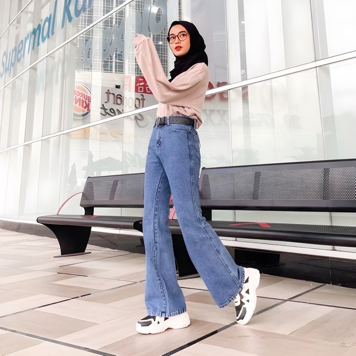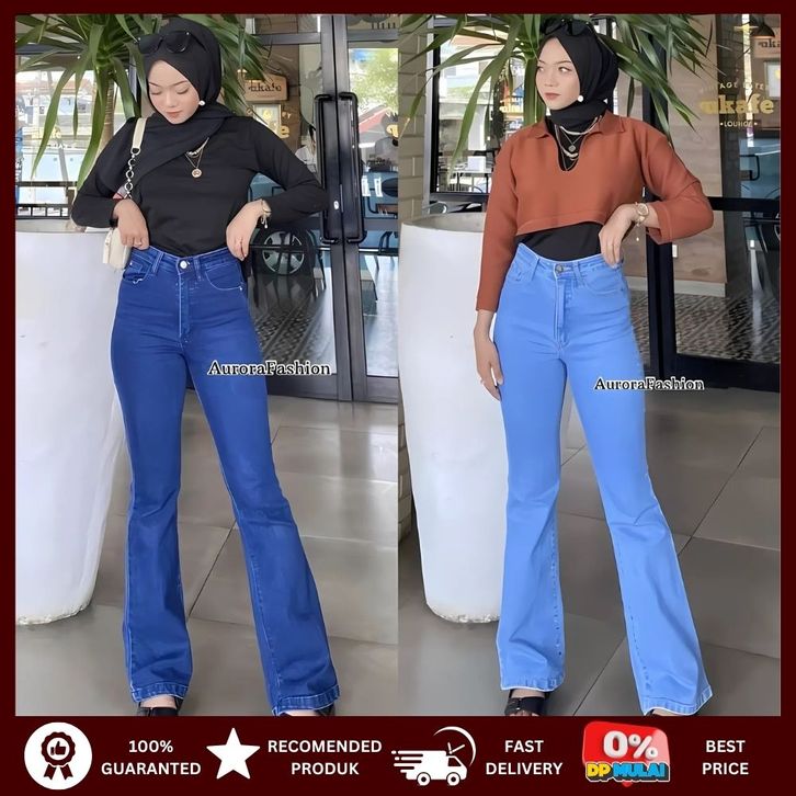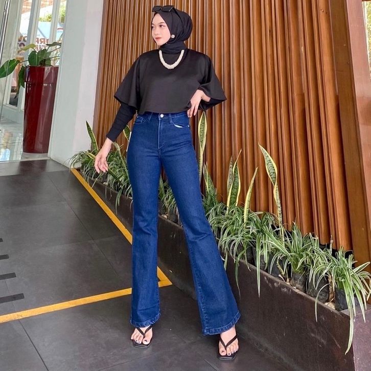 Highwaist Jeans Cutbray Loose Anti Ngatung Melar Tebal Denim Taya Celana Stretch Jeans Wanita Scuba Jumbo Knit Terbaru