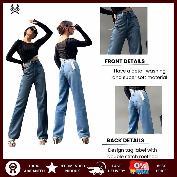 Highwast Straight Loose Swaggy 8122 Celana Jeans Panjang Wanita Denim Non Stretch Jumbo Dewasa Murah Cutbray Terbaru