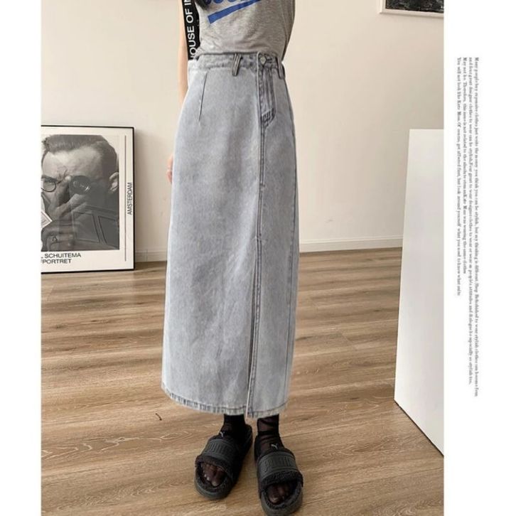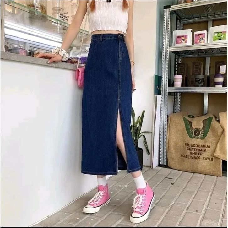 Rok jeans higwaist belah samping korean style A-line wanita kekinian span levis presso korea susun rayon plisket premium