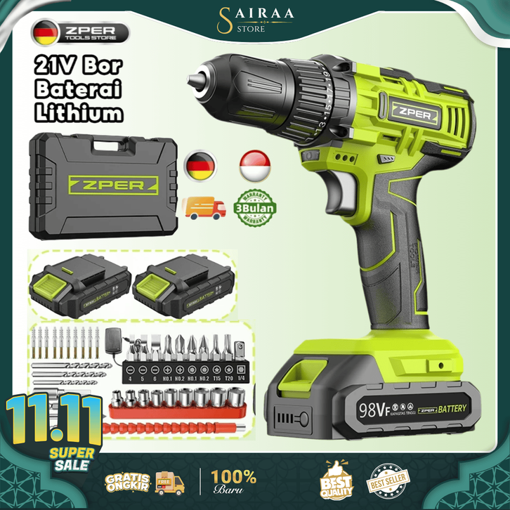 Mesin Bor Listrik ZPER Mesin Bor Baterai Cordless Cas Tangan Murah Berkualitas Bor Tanpa Kabel
