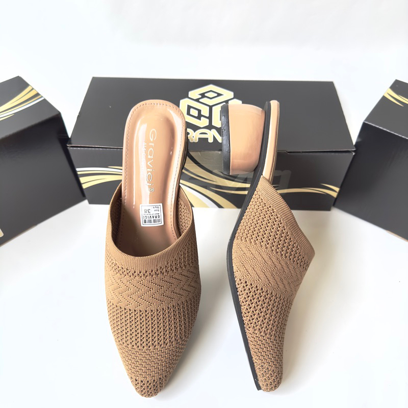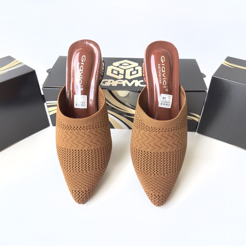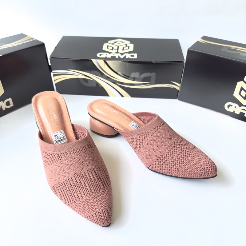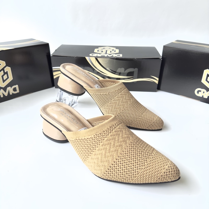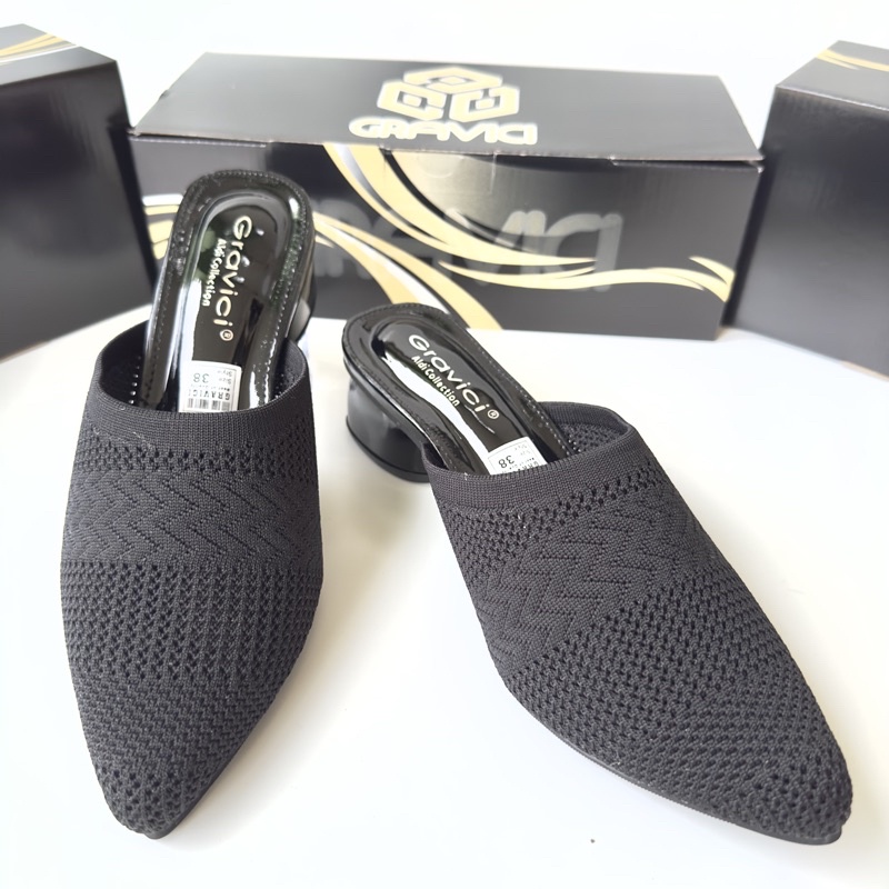 Sandal Hak Tahu 5 cm Wanita Bahan Rajut Import AR-04