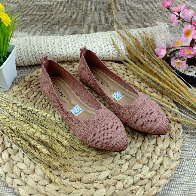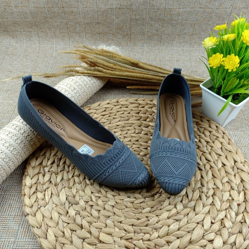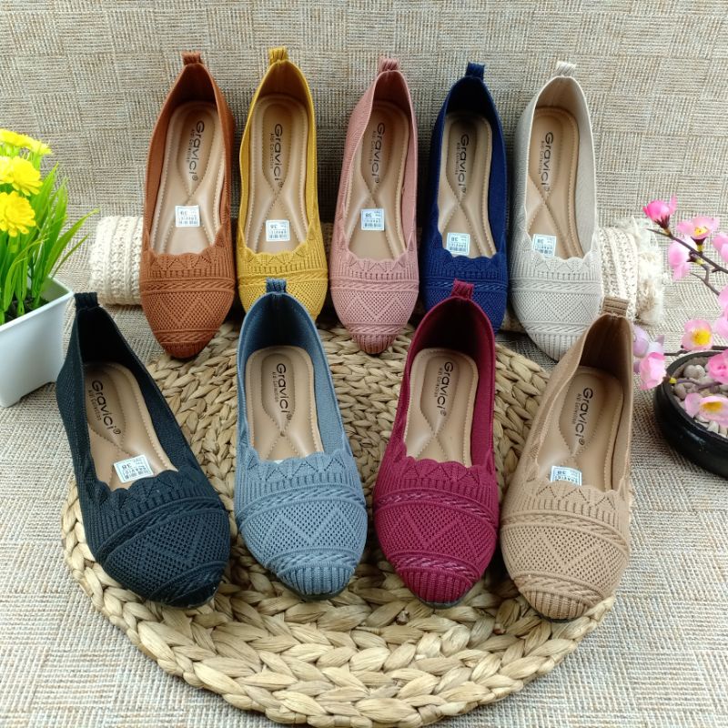 Sepatu Flat Wanita Gravici Bahan Rajut Import DO-29