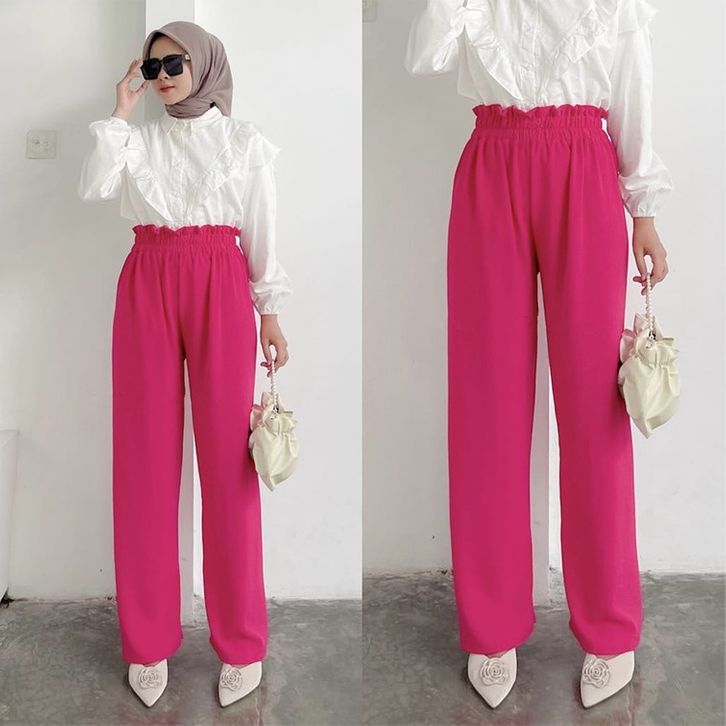 [100rb Dapat 3 Pcs] Celana Kulot Wanita Double Button CREPE Pants Terbaru
