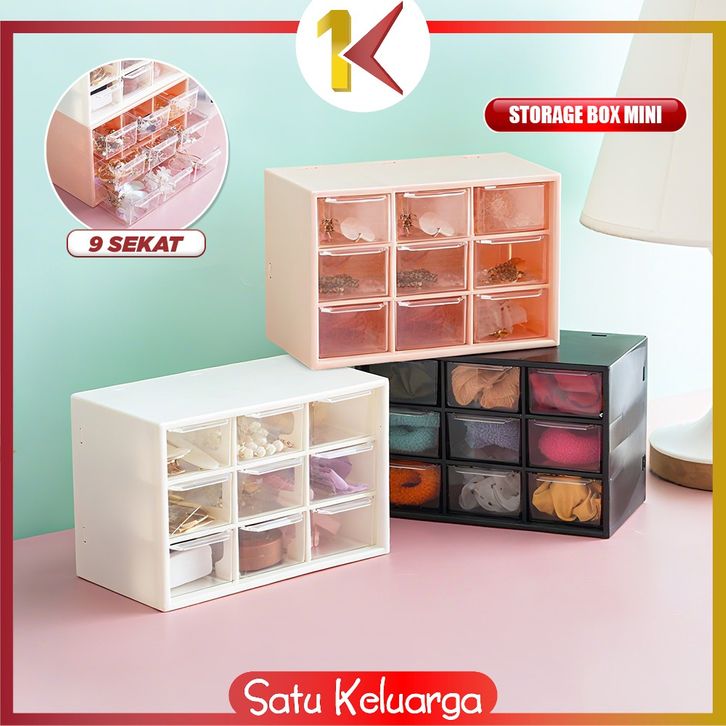 SK-C804 Kotak Laci Perhiasan kotak Aksesoris Mini 9 Sekat / Kotak Penyimpanan Serbaguna Laci Mini / Laci Aksesoris Stora