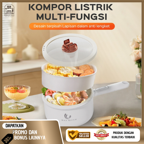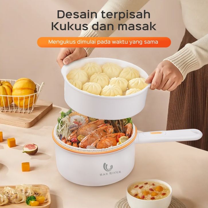 Panci set anti lengket Listrik HRDHG01 Fry Pan Electric (2in1) 2L panci listrik multifungsi serba guna kecil-putih murah
