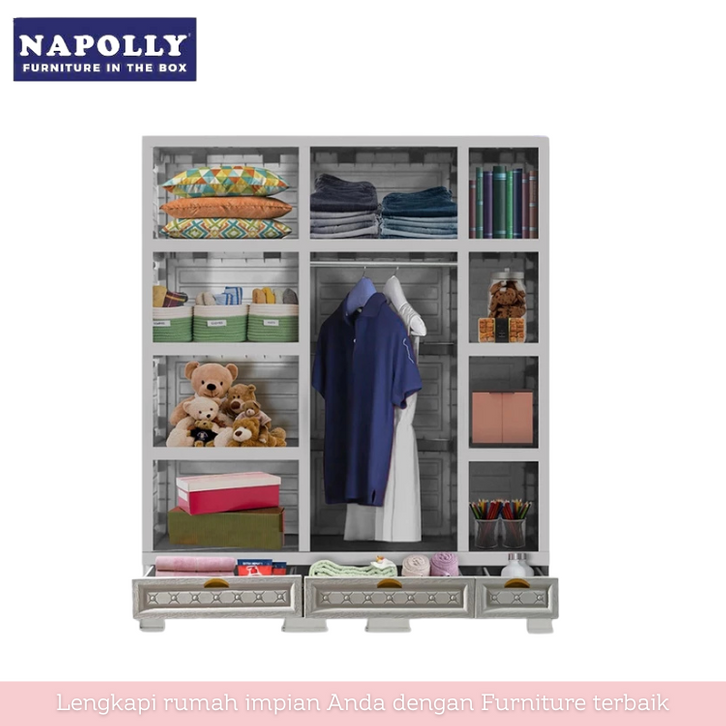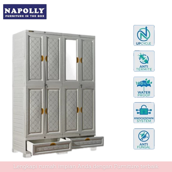 LEMARI PAKAIAN PLASTIK NAPOLLY 4 SUSUN JUMBO PINTU MIDICAB DC SUPER BESAR BERKUALITAS RAK BAJU GANTUNG ESTETIK MURAH