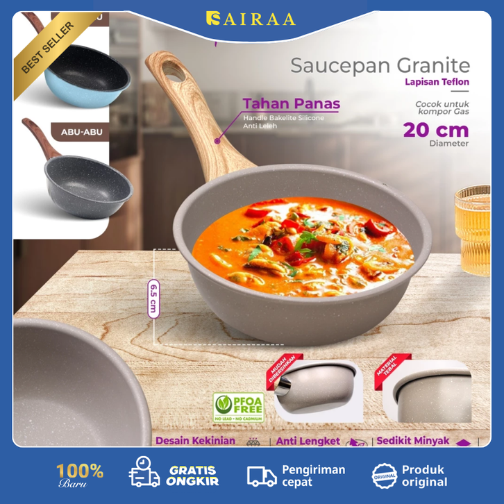 Tifale Deep Sauce Pan 20cm Granite Coating Anti Lengket