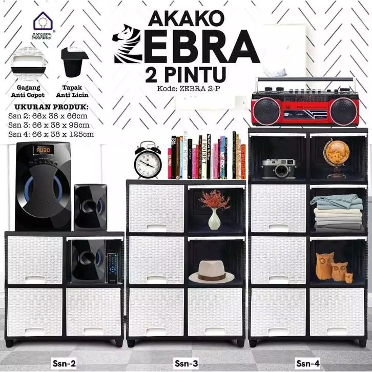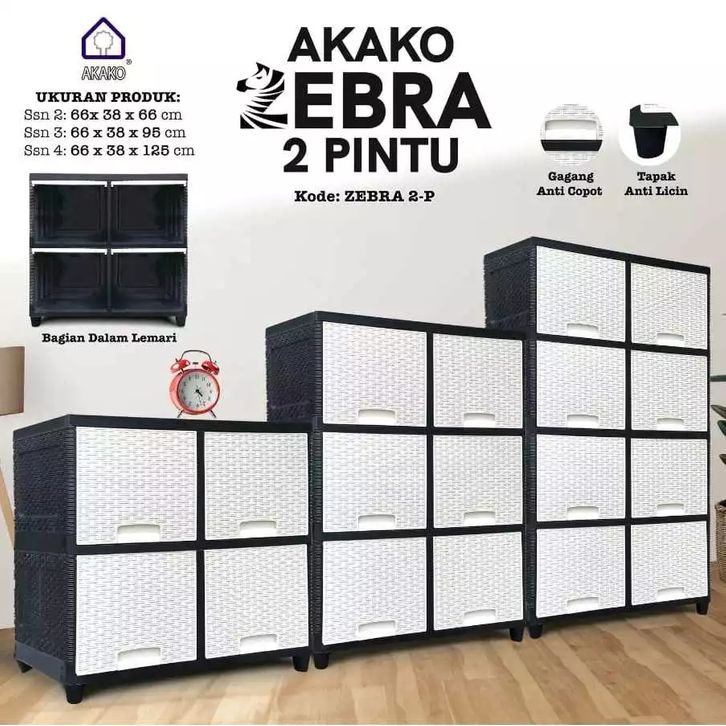 LEMARI PAKAIAN PLASTIK AKAKO ZEBRA 5 4 3 2 SUSUN LACI PINTU SLIDING GESER JUMBO MINI LOKER BAJU SEPATU PIRING HELM MURAH