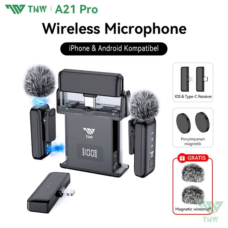 [Mall] Mic Wireless Clip On / TNW A21 Pro Microphone Wireless Magnetic Mic Clip On Dual Mikrofon Lavalier Mikrofon Iphon