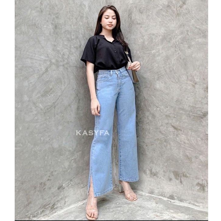 CELANA JEANS WANITA - EONNI KULOT JEANS BELAH PREMIUM // KULOT HIGHWAIST JEANS BELAH - CELANA JEANS WANITA TERBARU