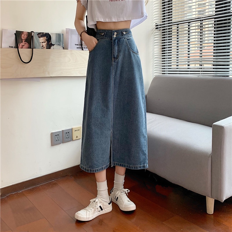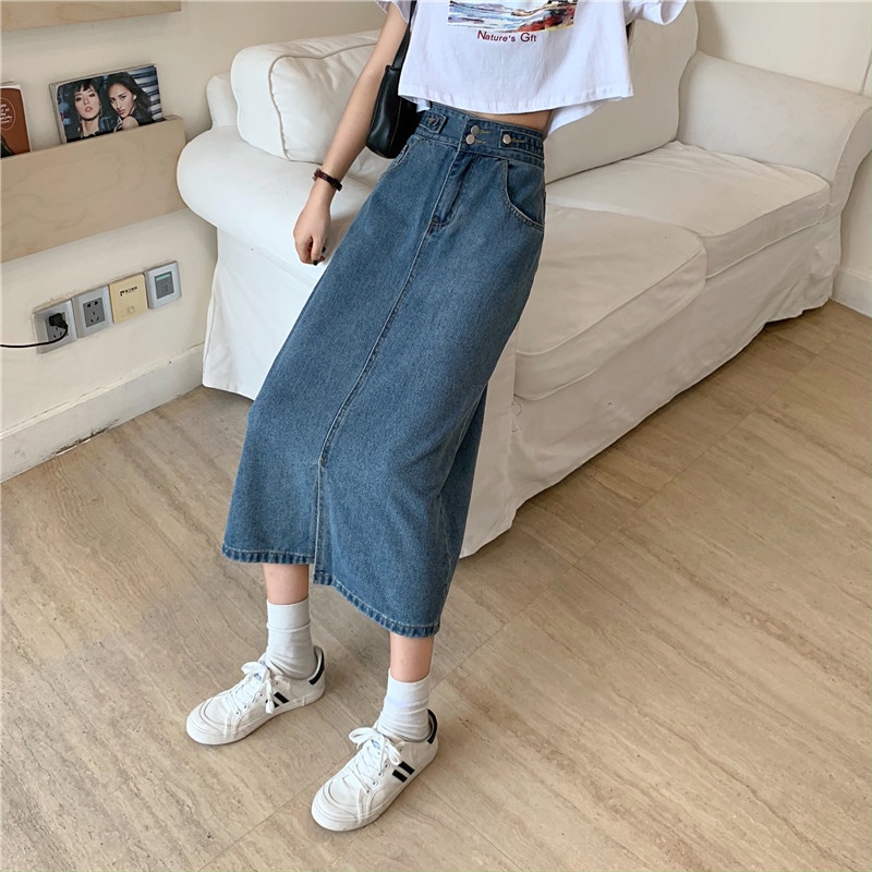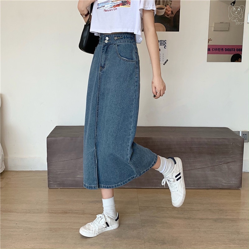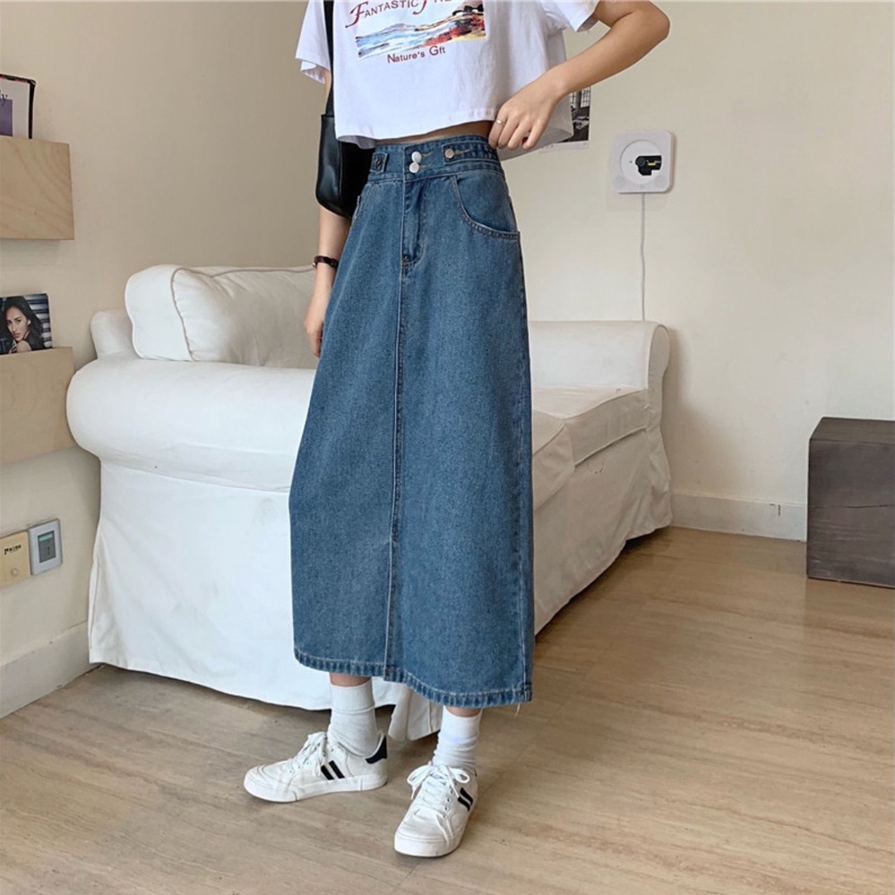 KOREAN STYLE ROK PENDEK JEANS WANITA /DENIM PINGGANG TINGGI ROK PANJANG