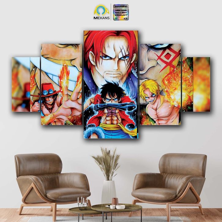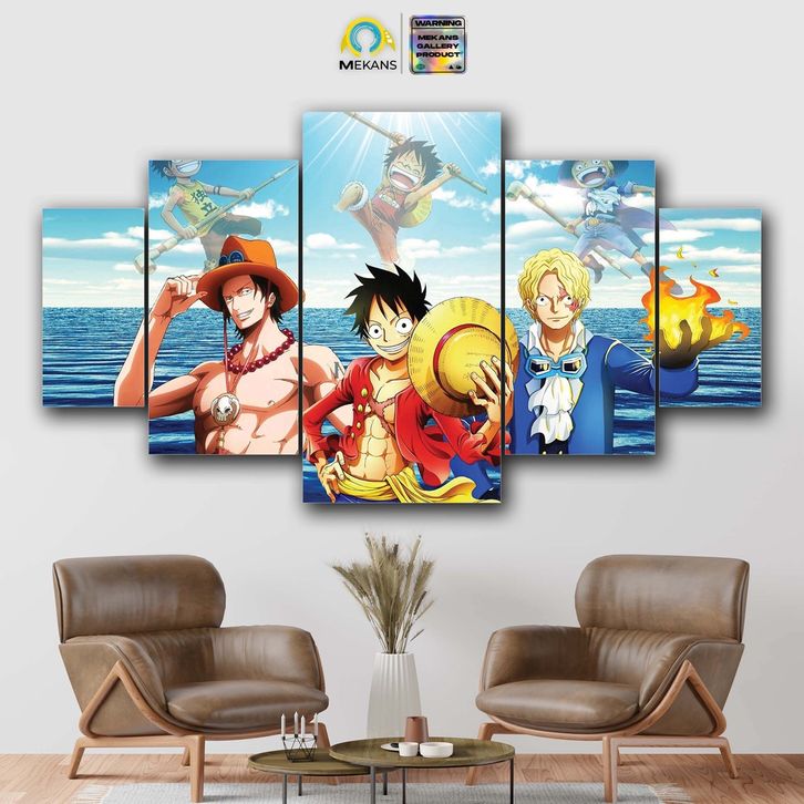 1 SET PAJANGAN HIASAN DINDING ACE SABO LUFFY 5PCS POSTER KAYU WALL DECOR