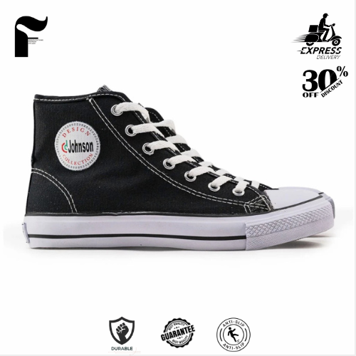 Sepatu Pria/Cewe Johnson Basic HighCut (HC) Black White Sepatu Sekolah Sekolah Anak laki laki/ Perempuan Terbaru 2025
