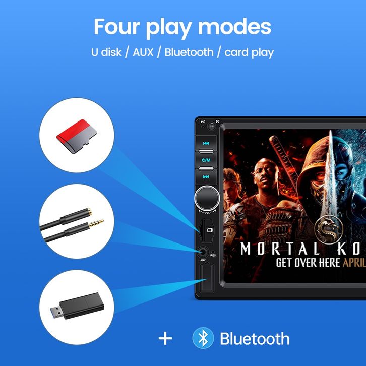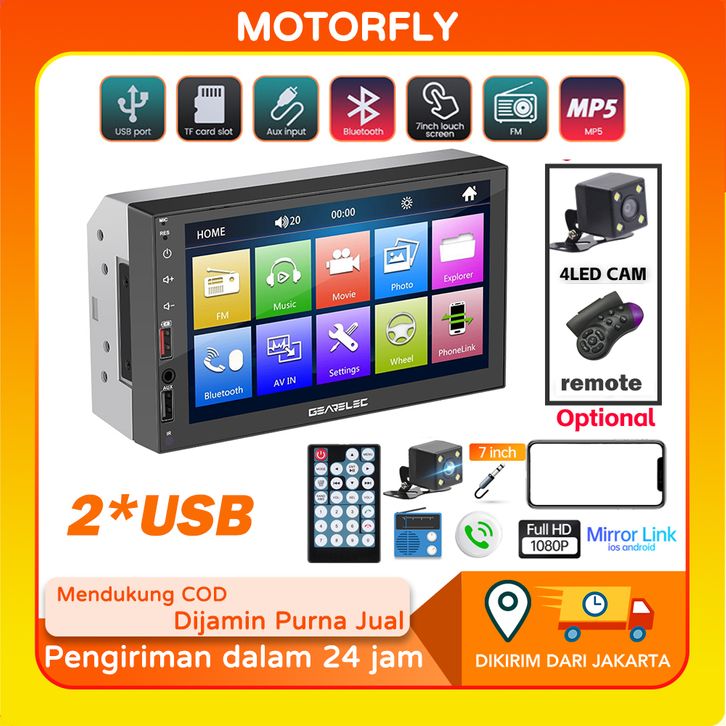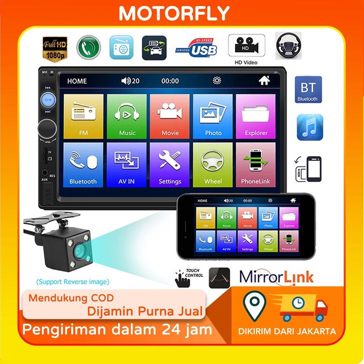 2 DIN Car Stereo 7 inci Head Unit Multimedia Video Player dengan Bluetooth Panggilan Hands Free AUX-Input TF USB Port