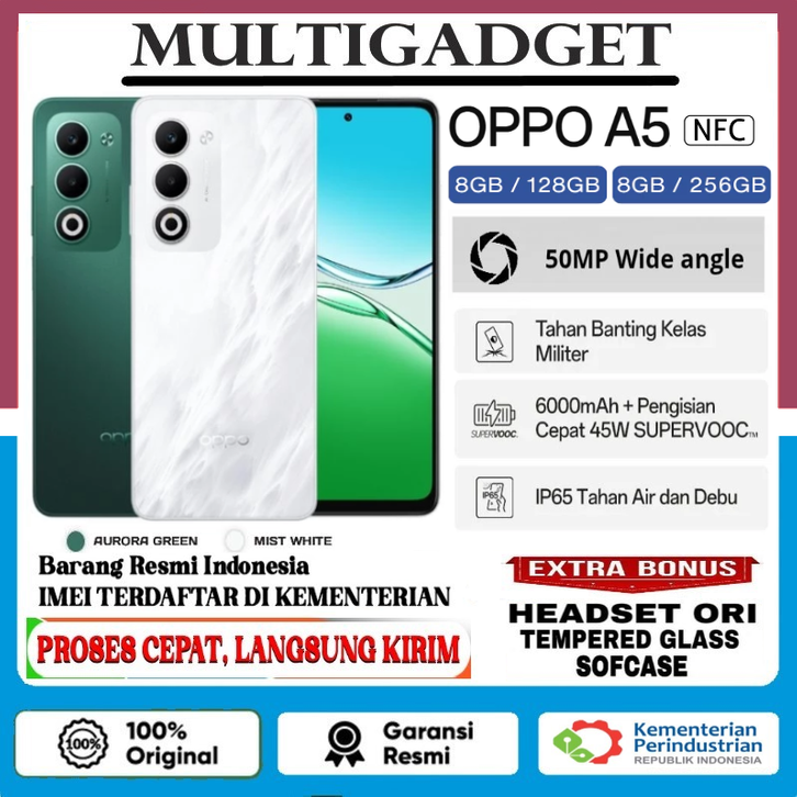 HP OPPO A5 NFC 8GB/128GB & 8GB/256GB (Snapdragon 6s 4G Gen 1, 6000mAh, IP65 Water Resistant)
