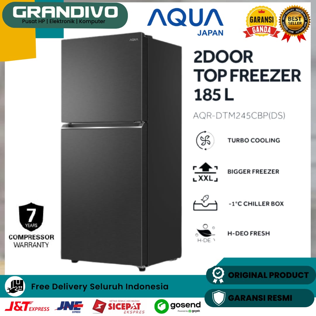 KULKAS AQUA 2 PINTU 185 LITER 100 WATT - AQR DTM 245 - DS / LS Garansi Resmi - Grandivo
