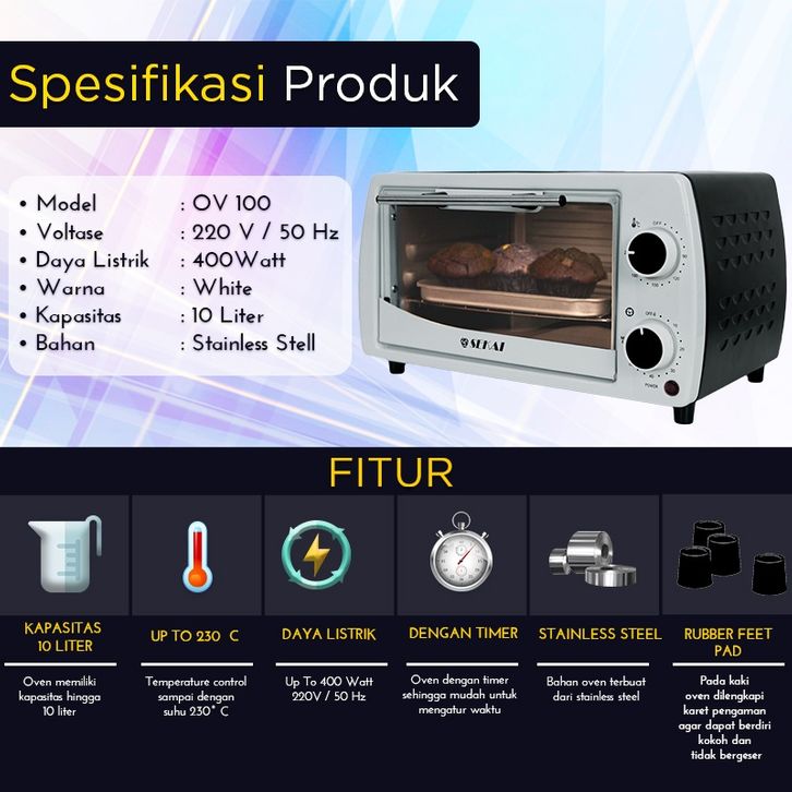 SEKAI Oven Listrik Low Watt Kapasitas 9L - 10L / Pemanggang Makanan Serbaguna - OV 090 / OV 100