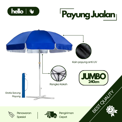 Payung Jualan 240 Cm Payung Tenda Taman Pantai Cafe Bazar Lapak Dengan Sarung