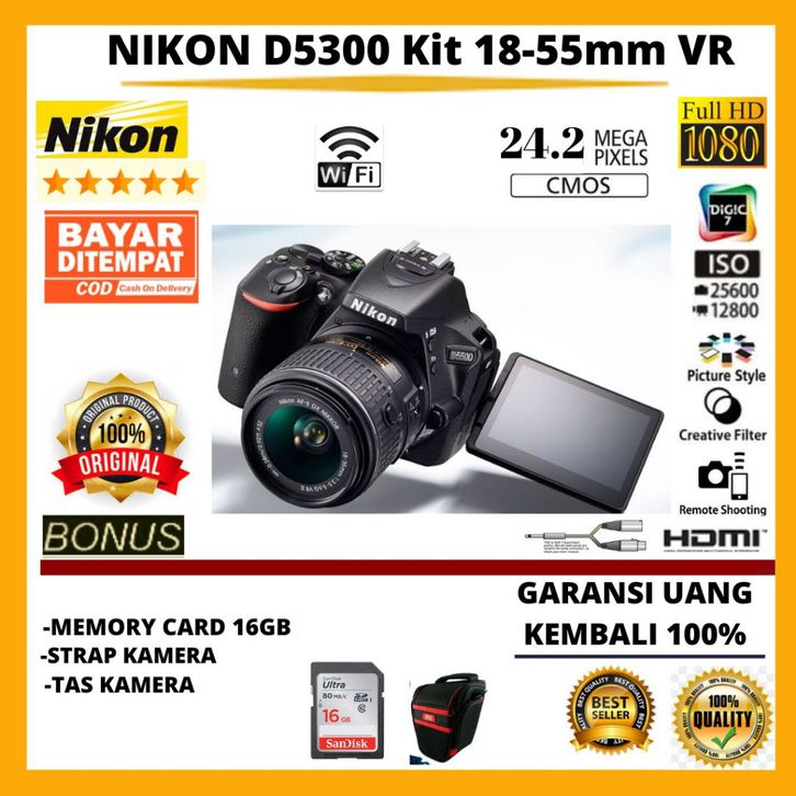 Nikon D5300 Kit 18-55mm VR Kamera Vlog WiFi