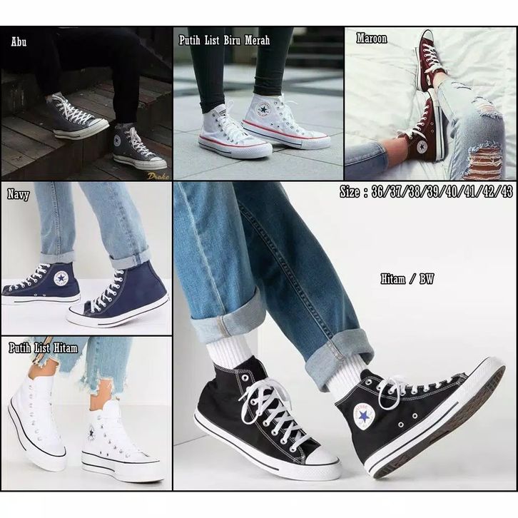 Sepatu All Star Tinggi / Sepatu Convers Chuck Taylor Classic High / Sepatu Sekolah Hitam Putih Murah