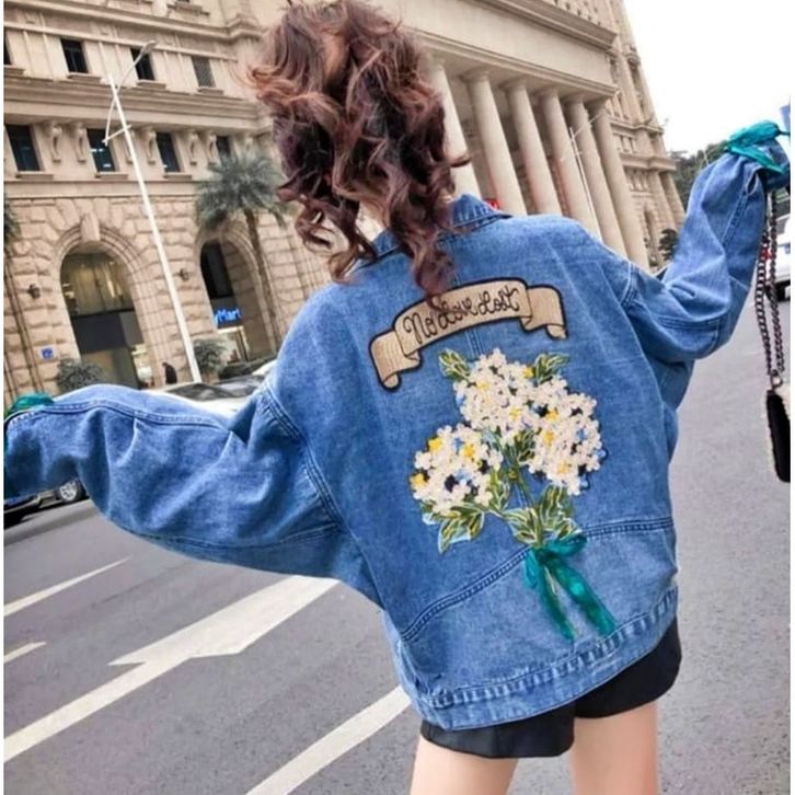 JAKET / JEANS BORDIR BUNGA+PITA KUALITAS BAGUS/JAKET WANITA/JAKET MURAH/JAKET WANITA KEKINIAN/JAKET WANITA