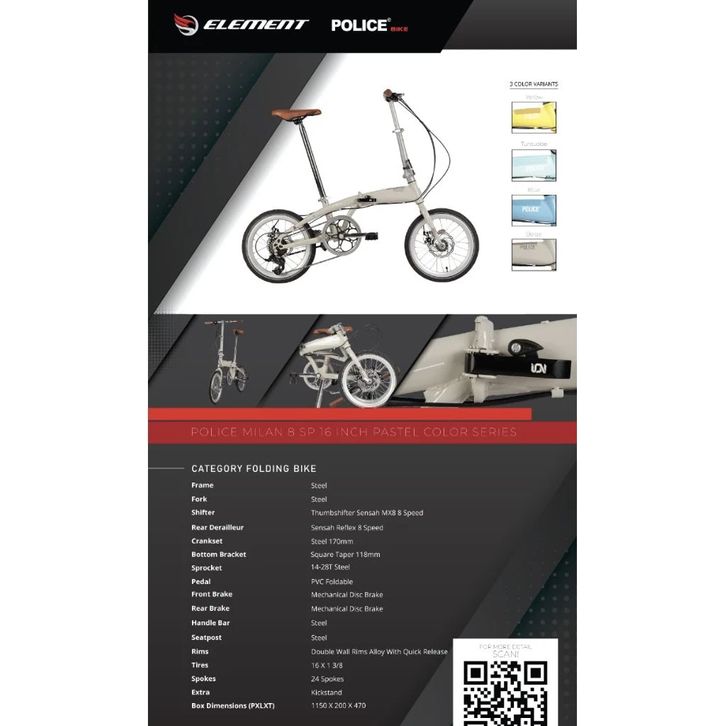 SEPEDA LIPAT 20 16 INCH ELEMENT POLICE MILAN PASTEL 8 SPEED / KRONOS 1.0