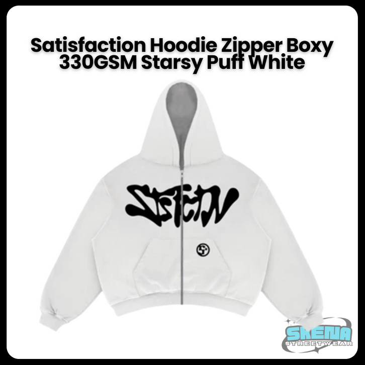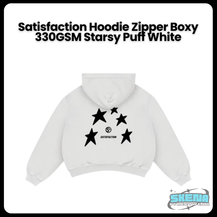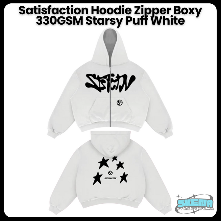 Satisfaction Hoodie Zipper Boxy 330GSM Starsy Puff White