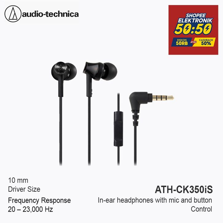 Audio-Technica ATH-CK350iS Earphone with Mic - Black
