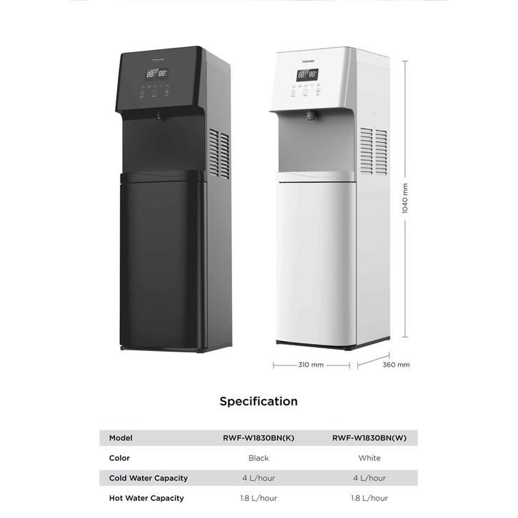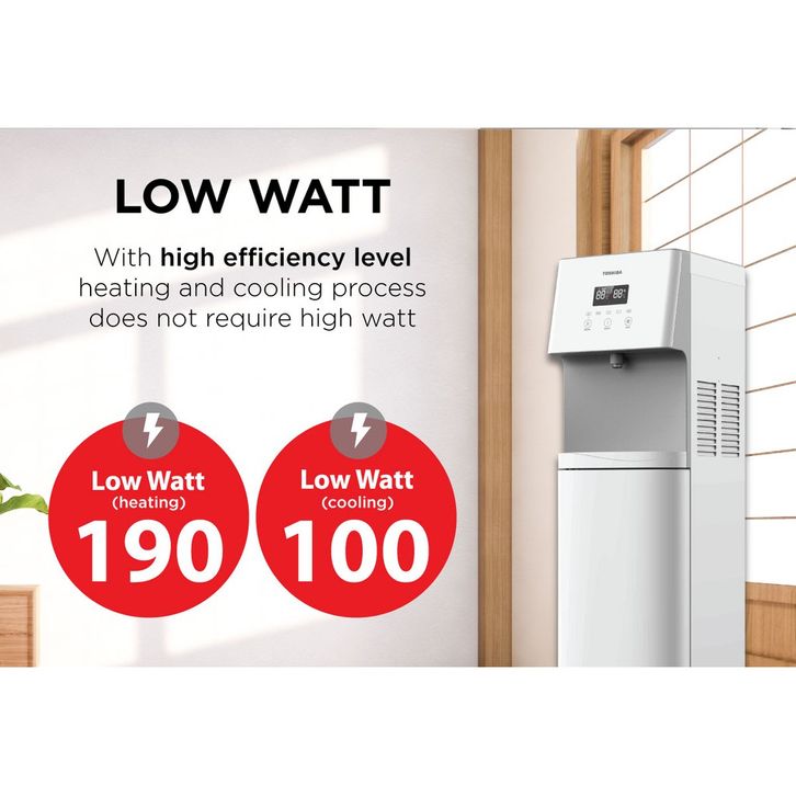 TOSHIBA W1830BN DISPENSER AIR PANAS DINGIN GALON BAWAH HEMAT DAYA WATER BOTTON LOADING LOW WATT ORIGINAL GARANSI RESMI