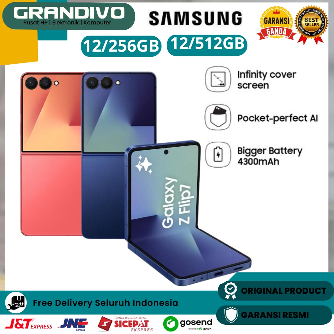 SEGEL HP Samsung Galaxy Z Flip7 Ram 12/512GB | 12/256GB Smartphone AI Phone Garansi Resmi - Grandivo
