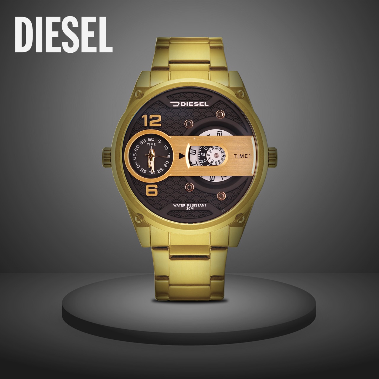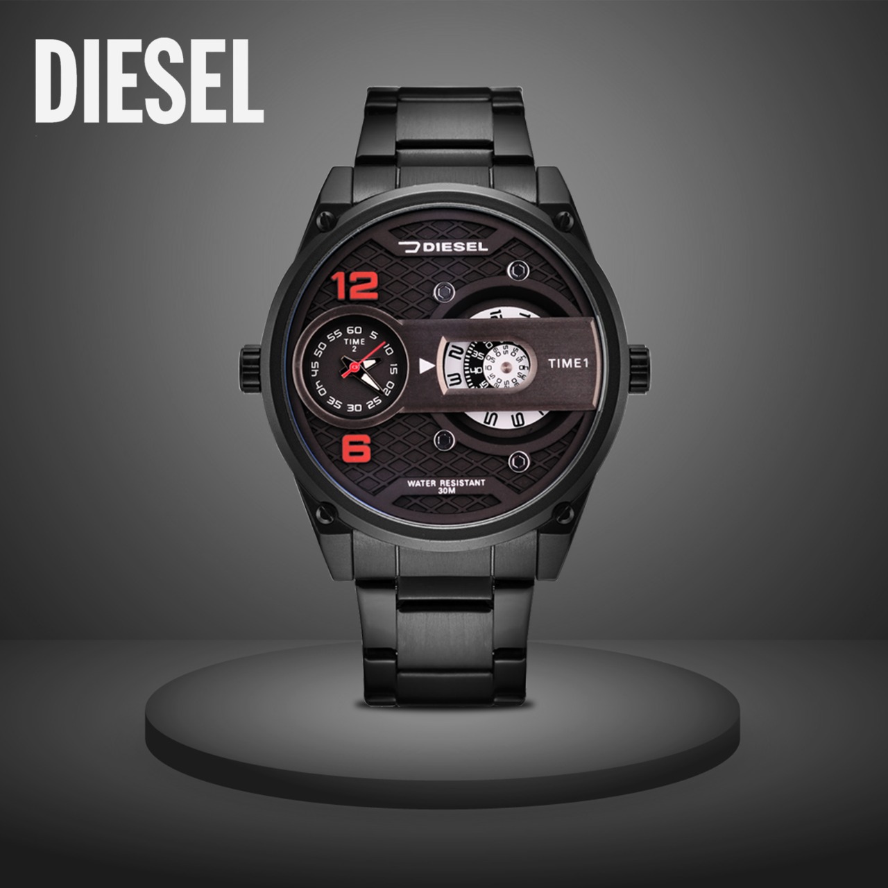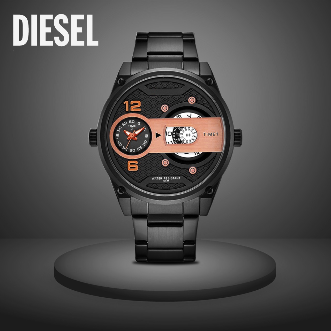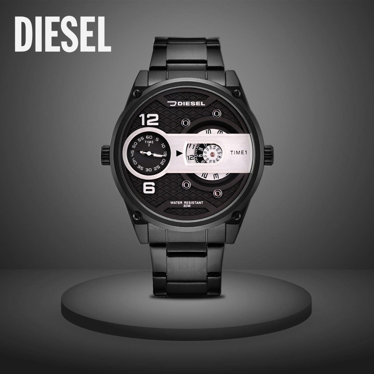 Jam Tangan Pria Analog Diesel Tali rantai Stainless Steel Lengkap dengan Box
