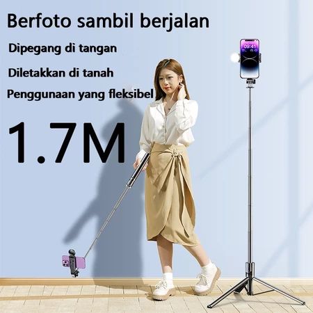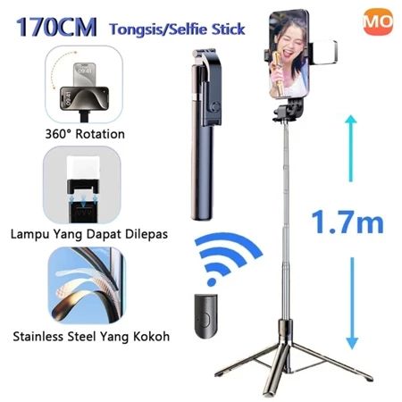 170cm Tongsis Selfie Stick Tripod 360° Tongsis Tripod Bluetooth Remote Portable Lampu Led Tripod Hp Tongkat Selfie